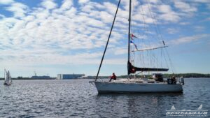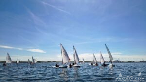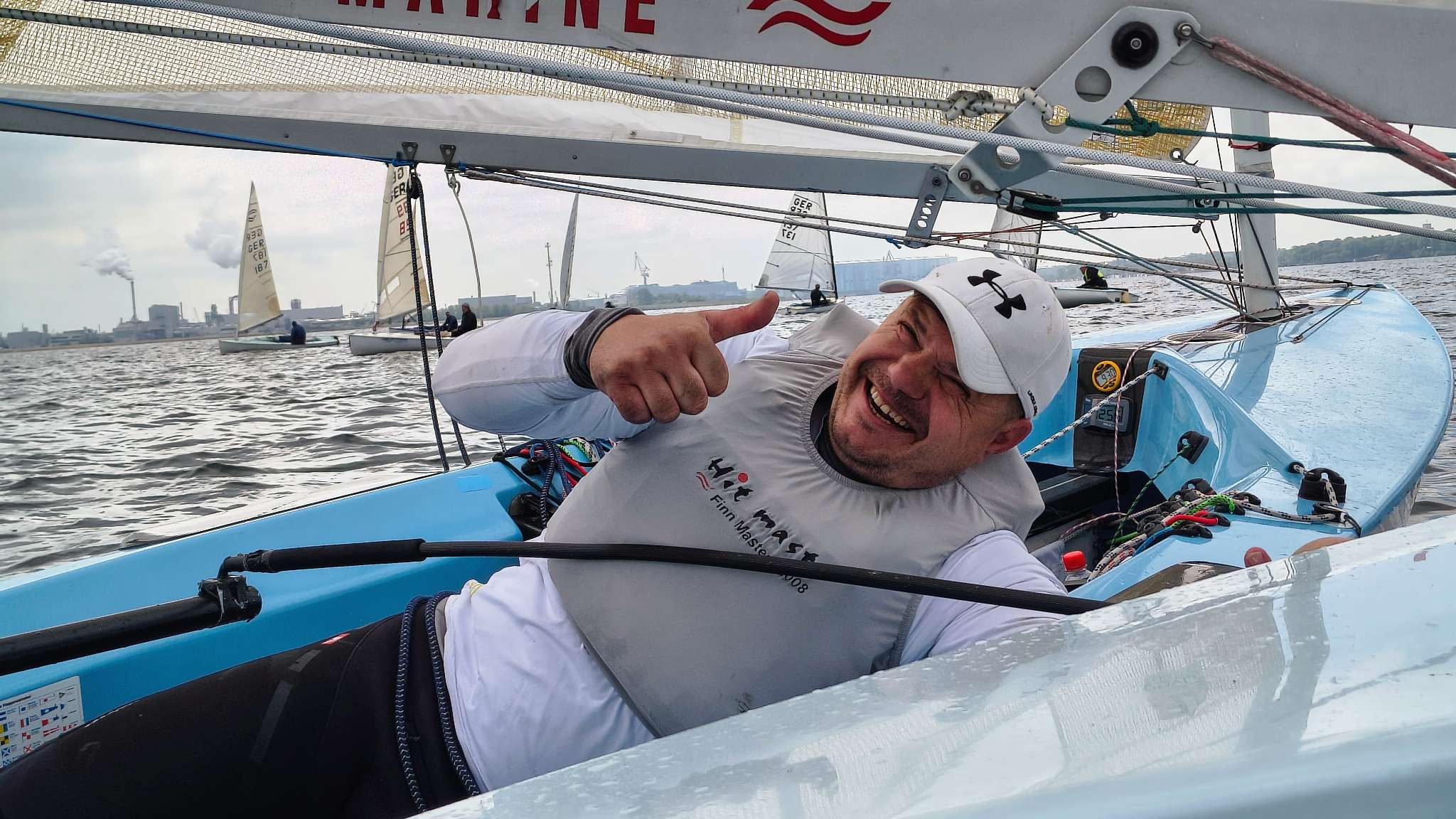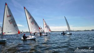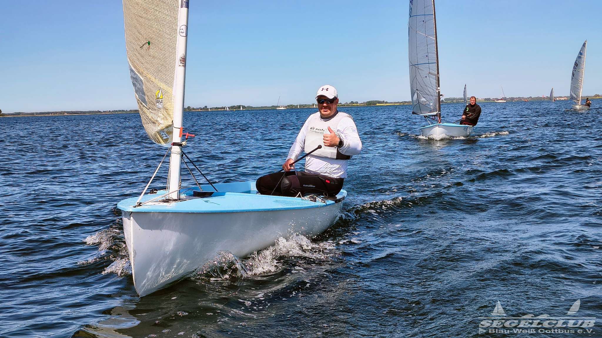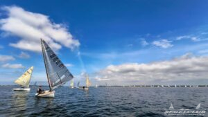 Der Sonntag begann erneut mit einer Startverschiebung. Die Anfahrt ins Regattagebiet zog sich, da der Wind sehr wechselhaft und unbeständig war. Schließlich konnte aber doch noch gestartet werden. Kurios am Rande: Beim gemeinsamen Vorwindkurs mit den ILCAs wurde Kay Ermoneit unfreiwillig zum „Schwanenführer“, da ihm eine kleine Schwanengruppe hartnäckig folgte – sehr zur Belustigung der übrigen Teilnehmer.