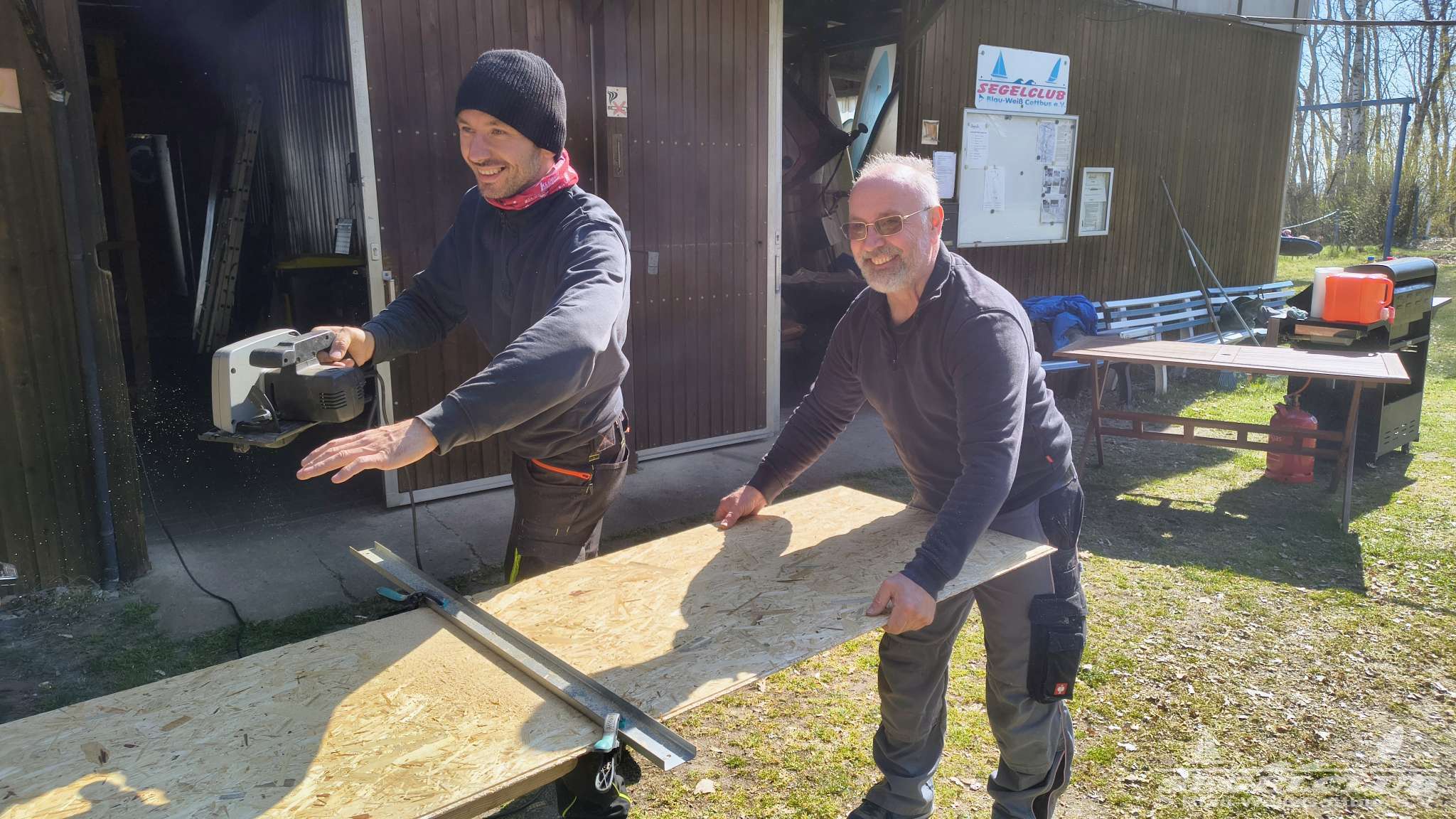 Wie jedes Jahr stand zunächst die gemeinsame Arbeit im Vordergrund. Das Vereinsgelände wurde vom Laub befreit und auf Vordermann gebracht. In der Werkstatt ging es ebenfalls voran: Dort wurde eine Wand mit Sperrholzplatten verkleidet und damit ein weiterer Schritt in Richtung besserer Nutzung der Räumlichkeiten gemacht.
