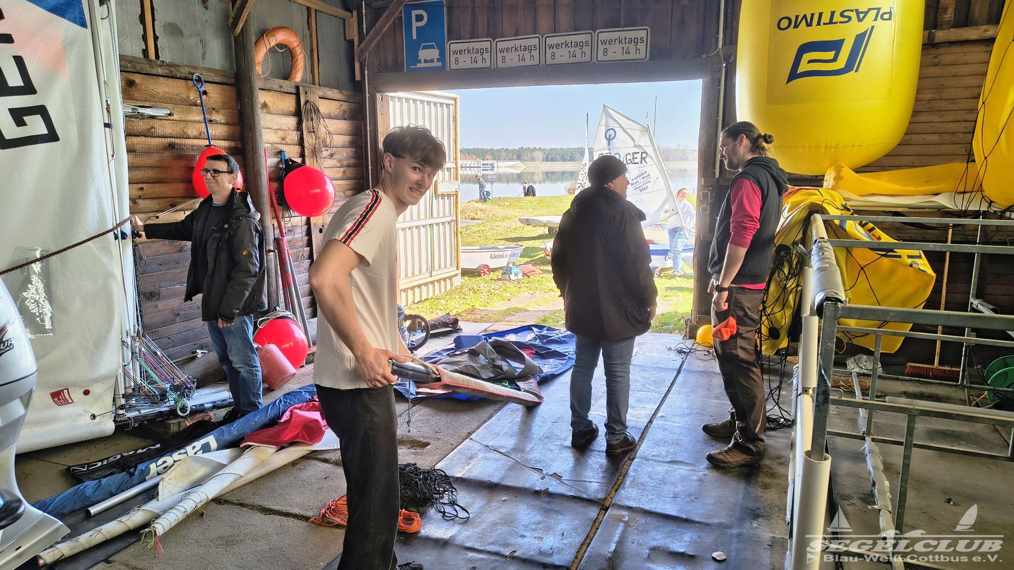 Parallel dazu wurden die Optimisten startklar gemacht, denn bereits in der kommenden Woche beginnt das Kinder- und Jugendtraining. Außerdem konnten wir den Grundstein dafür legen, unsere Optiboote künftig außerhalb des Schuppens zu lagern. Das schafft im Inneren neue Möglichkeiten für eine strukturiertere und effizientere Lagerung.