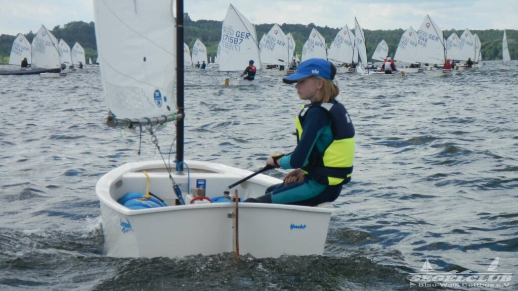 Der Einstieg erfolgt bei uns in der Regel im Optimisten (Opti) – dem idealen Boot für Kinder. Es ist stabil, überschaubar und perfekt auf junge Segler abgestimmt.